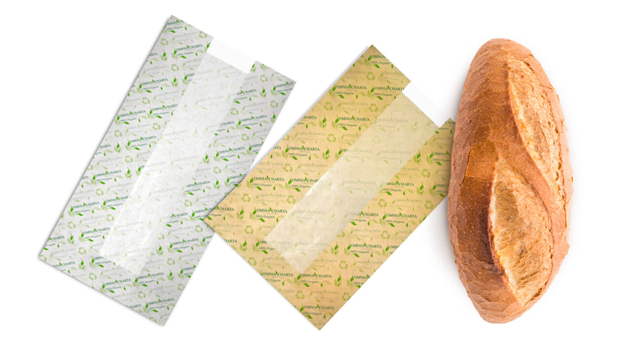 Questa speciale carta è dedicata al confezionamento e la conservazione del pane, pizza ed altri alimenti. E’ composta da carta Kraft di pura cellulosa e presenta una finestra trasparente in carta pergamin per la visualizzazione dell’alimento al suo interno, compostabile al 100%.